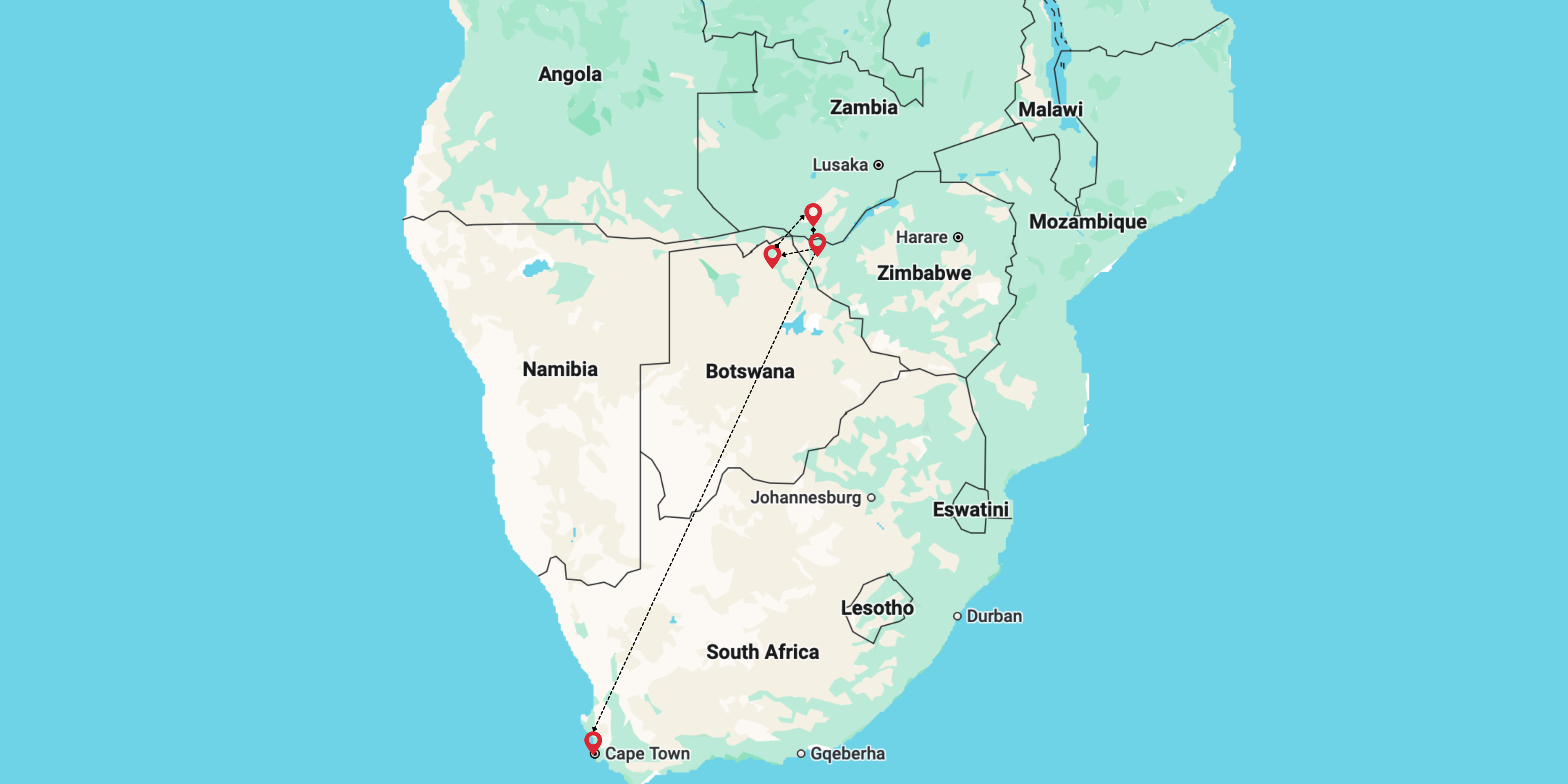 Southern Africa is one of the most vibrant and breathtaking regions in the world. From the roars of Victoria Falls to the untamed wildlife of Botswana and Zambia, and the culture and beauty of Cape Town, this journey is carefully curated to give you a blend of iconic sights, exciting adventures, and unforgettable experiences.